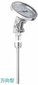 3、万向型双金属温度计:指针盘与保护管连接角度可任意调整